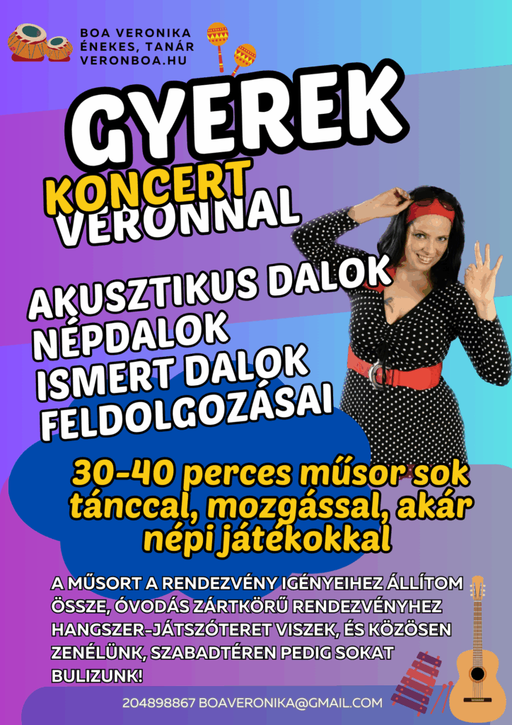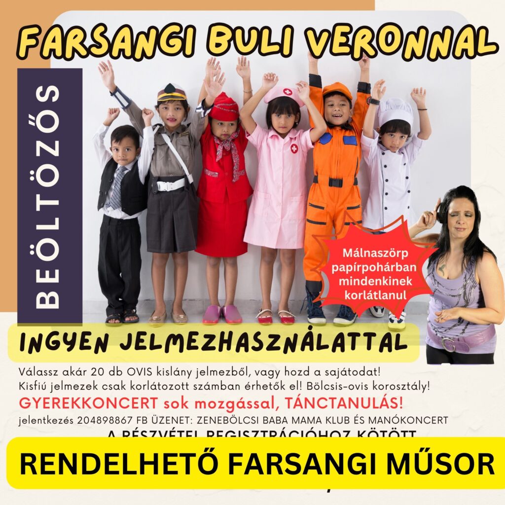 Baba-mama foglalkozás: facebook.com/zenebolcsiveronnal ár: 2000 ft/ baba, tesókáknak csak 1000 ft pluszban, 60 perces foglalkozások hangszerekkel, Békéscsabán és Gyulán, óvodák számára is rendelhető.